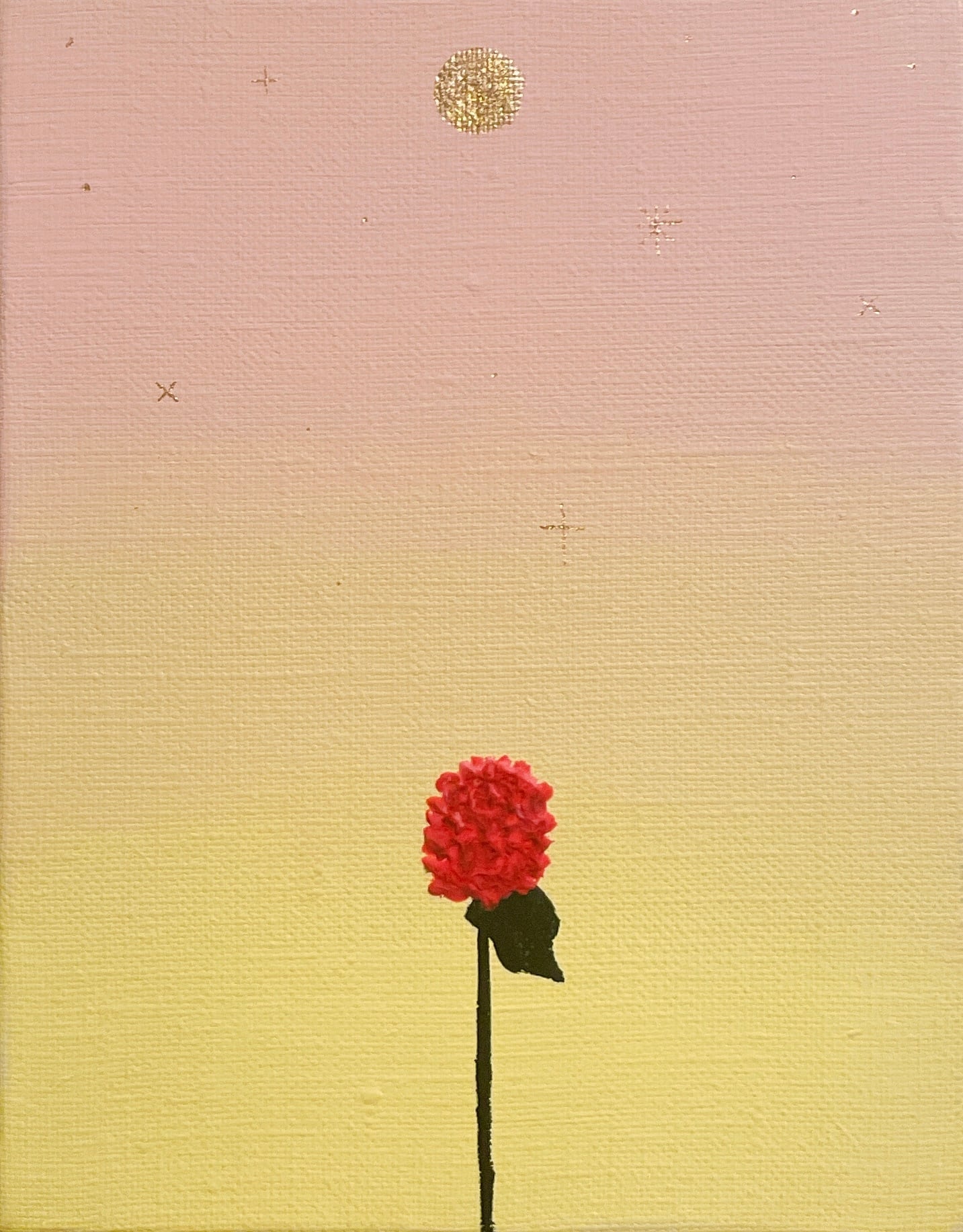 「不死、千日紅」は、千日紅の持つ美しさと独特の質感を生かしました。